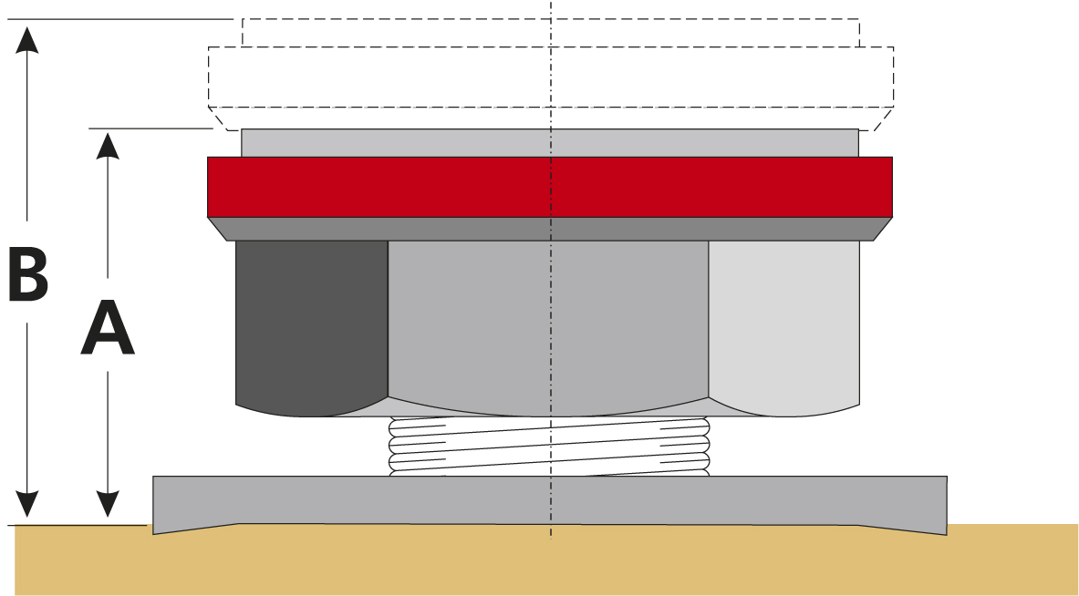 Die Verstellhöhe ergibt sich aus der Differenz A zu B.